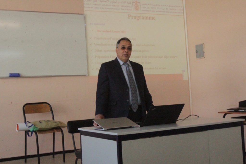 هذا وقد قدم نتائج البحث الذي انجزه بالمناسبة لتشخيص تمثلات الطلاب بخصوص طبيعة الأسلوب البيداغوجي الدي هيمن على اختيارات جل الاجابات.