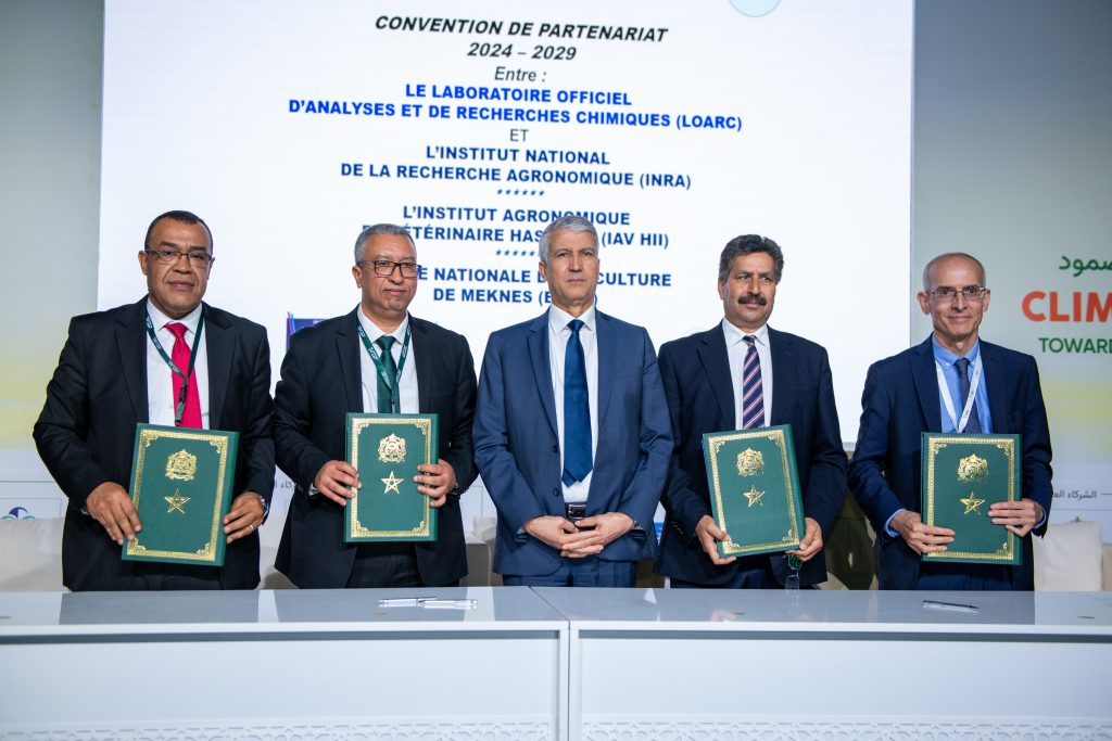 26.04.2024 الملتقى الدولي للفلاحة بالمغرب : توقيع اتفاقية شراكة بين المختبر الرسمي للتحاليل والبحوث الكيميائية والمعهد الوطني للبحث الفلاحي ومعهد الحسن الثاني للزراعة والبيطرة الكيميائية والمدرسة الوطنية للفلاحة بمكناس