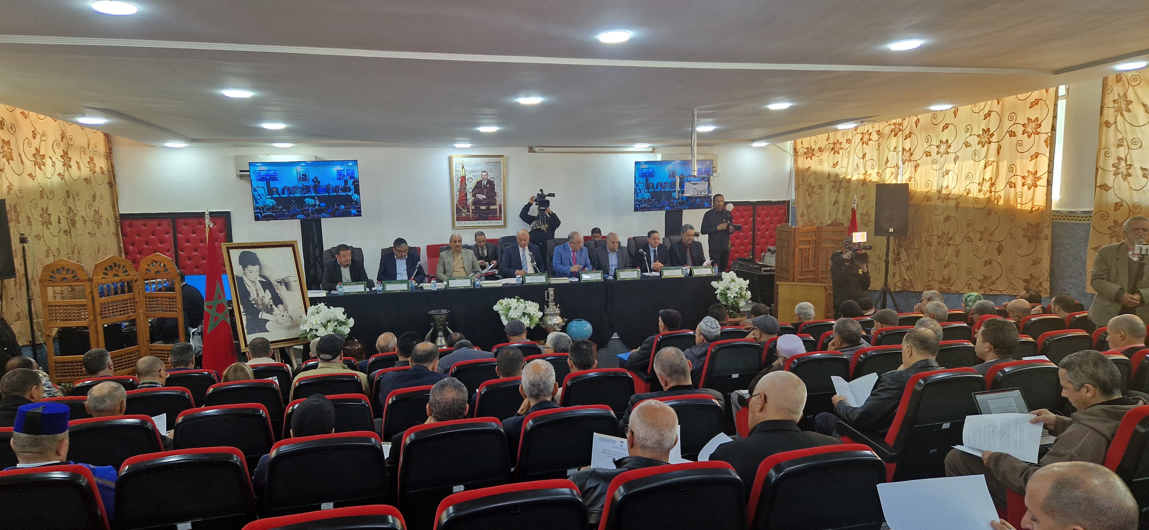 اليوم بحضوركم، في ضيافة هذا الصرح العلمي بمدينة مكناس، لحضور أشغال هذا الجمع العام الذي يتم خلاله عرض عمل الغرفة بعد تجديد انتخاب المكتب المسير الذي ناهز شهرين، حيث عرفت الفترة الفاصلة بين الدورة السابقة والدورة الحالية عدة أنشطة كان أبرزها الزيارة الميدانية لمقر الغرفة بفاس وبعض الأحياء الحرفية كبنجليق وعين النقبي، من طرف السيد كاتب الدولة المكلف بالصناعة التقليدية والاقتصاد الاجتماعي والتضامني بعد شرف تعيينه من طرف صاحب الجلالة الملك محمد السادس نصره الله وأيده. وذلك في إطار تعزيز التواصل مع الفاعلين في قطاع الصناعة التقليدية وباسمكم جميعا، عضوات وأعضاء هذا المجلس الموقر، وباسم كافة الصانعات والصناع التقليديين بالجهة، نتوجه بتشكراتنا الخالصة وامتناننا الكبير للسيد كاتب الدولة المكلف بالصناعة التقليدية والاقتصاد الاجتماعي والتضامني الذي نكن له كل التقدير والاحترام، على رحابة صدره وشغفه وحرصه التام للنهوض بقطاع الصناعة التقليدية، ومن منطلق مختلف محطات هذه الزيارة فقد لمسنا الرغبة الأكيدة للسيد كاتب الدولة ونظرته الطموحة لهذا الورش الحرفي الهام والكبير الذي أضحت أهدافه اليوم ضرورات قصوى.