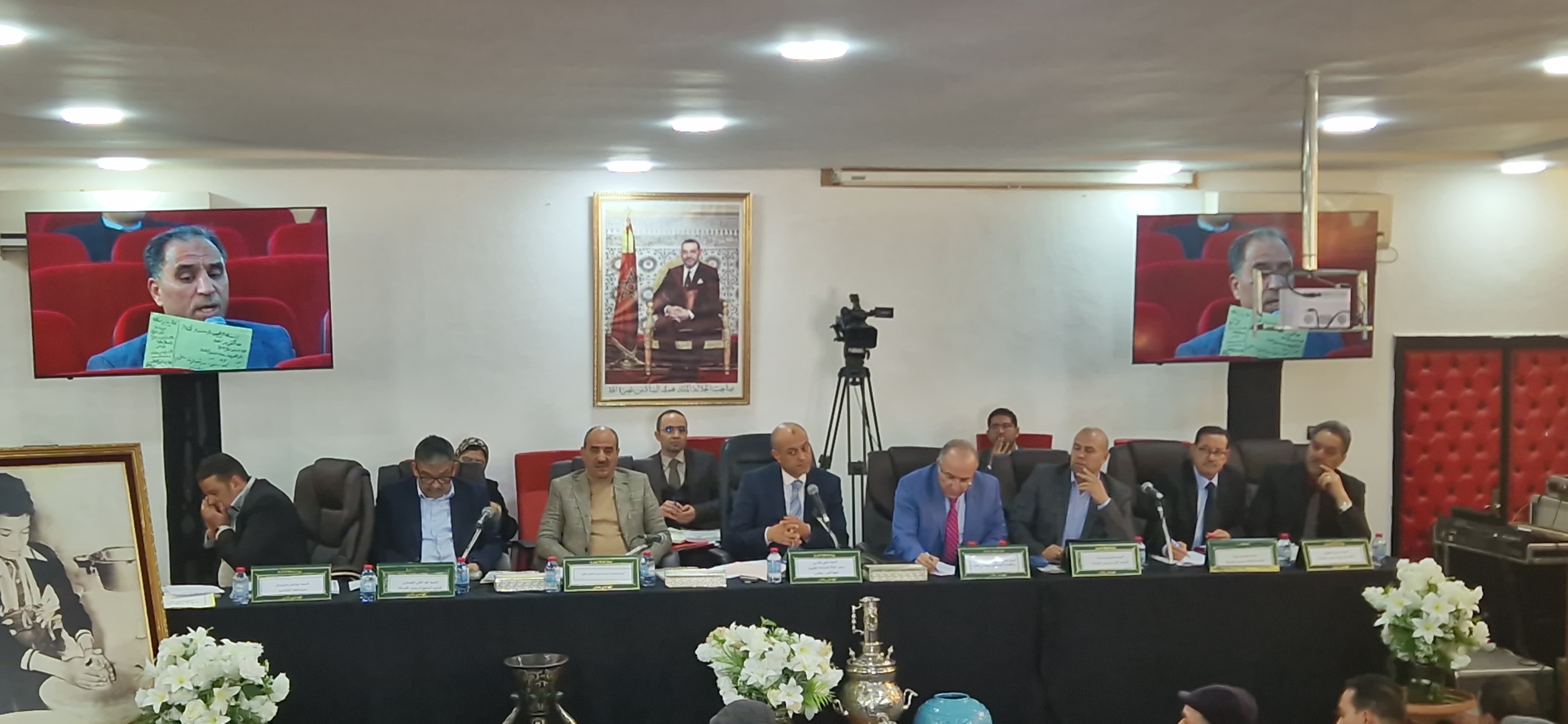السيد المندوب الجهوي لمكتب تنمية التعاون؛السيد: المدير الجهوي بمكناس؛السيد المدير الجهوي بتازة؛السيدة المديرة الإقليمية بصفرو؛ السيد مدير المعهد المتخصص في فنون الصناعة التقليدية بمكناس؛أخواتي، إخواني أعضاء مجلس الغرفة؛حضرات السيدات والسادة المحترمين، طبقا لمقتضيات الفصل 11 من الظهير الشريف رقم 1.11.89 بشأن النظام الأساسي لغرف الصناعة التقليدية، يشرفني بداية أن أرحب بجميع الحاضرين وممثلي المصالح الخارجية ورجال الصحافة والإعلام كل باسمه ومقامه. وتحية طيبة إلى كل المتابعين لأشغال اجتماع مجلس غرفتنا في إطار دورته العادية لشهر فبراير 2025 مباشرة على صفحة الغرفة بمواقع التواصل الاجتماعي.وشكرا جزيلا للسيدات والسادة أعضاء الغرفة على تشريفنا.