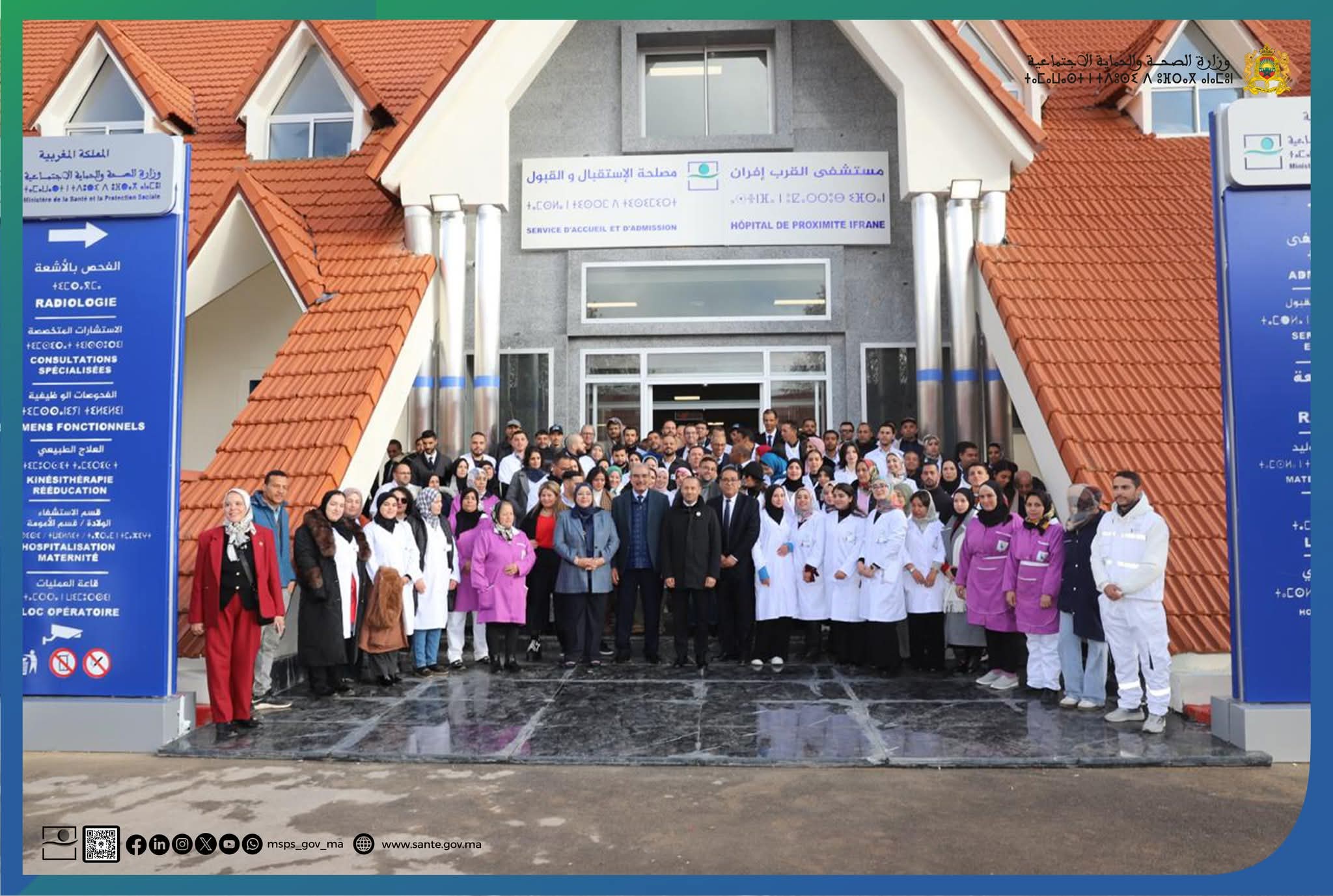 أعطى وزير الصحة والحماية الاجتماعية أمين التهراوي يوم السبت 01 دجنبر 2025 بمعية عامل إقليم إفران إدريس مصباح وعدد من رؤساء الجماعات والمنتخبين الانطلاقة الرسمية لخدمات مستشفى القرب بمدينة إفران بالإضافة إلى تفعيل خدمات 30 مؤسسة صحية حضرية وقروية عبر تقنية التطبيب عن بعد ضمن جهة فاس‑مكناس.